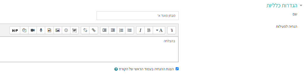 שם– נבחר שם לקובץ אשר יופיע בעמוד הראשי של הקורס